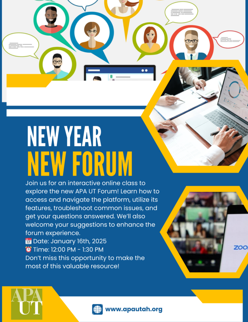 Join us for an interactive online class to explore the new APA UT Forum! Learn how to access and navigate the platform, utilize its features, troubleshoot common issues, and get your questions answered
